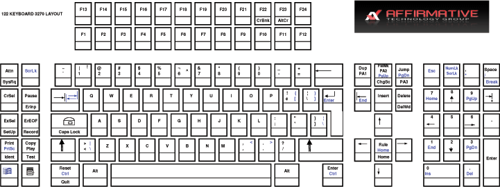 Affirmative 1229T (PS/2) & 1229U (USB) 122-key 3270 Keyboard Layout