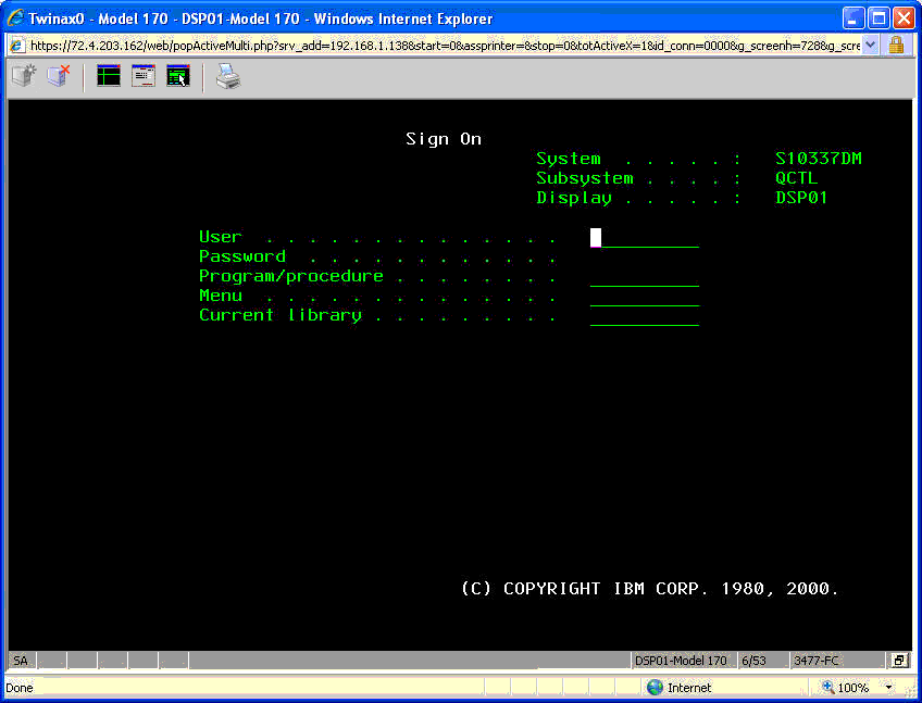 Console DSP01 in QCTL (Twinax Address 0 / Port 0)