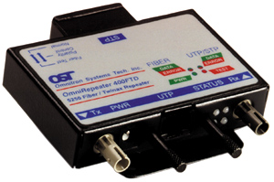 fiber via the OmniRepeater 400FTD and then to twisted pair via